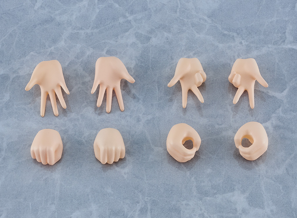 ・手首パーツは「握り手」「平手」「ピース手」「持ち手」の4種が付属。
